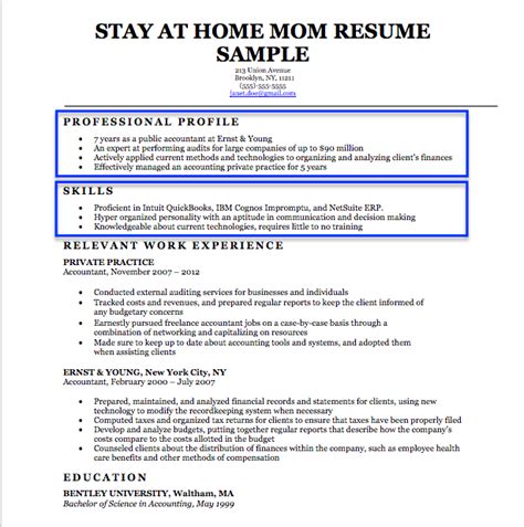 So, stay at home mom, if and when you decide to go into the work force don't feel insecure you took a few years out. • highlight your skills and core competencies using strong action words and adjectives. They both want to emphasize their skill set over their career progression. As a mother, you will have to tutor and nurture your kids in a host of things that you are not even familiar.