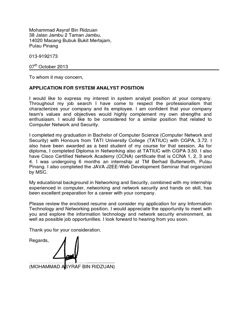 View Application Letter For Information Technology