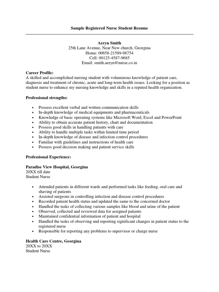 The following nursing student resume samples are professional in design, format and layout and they are going to make a candidate look sharp instantly, and all the required guidelines are provided to prepare a stunning resume with all the highlighting points that an interviewer looks for. These roles will help you apply your clinical education and health care skills, giving you the experience you need to develop as a registered nurse. Student nurse intern resume examples & samples.